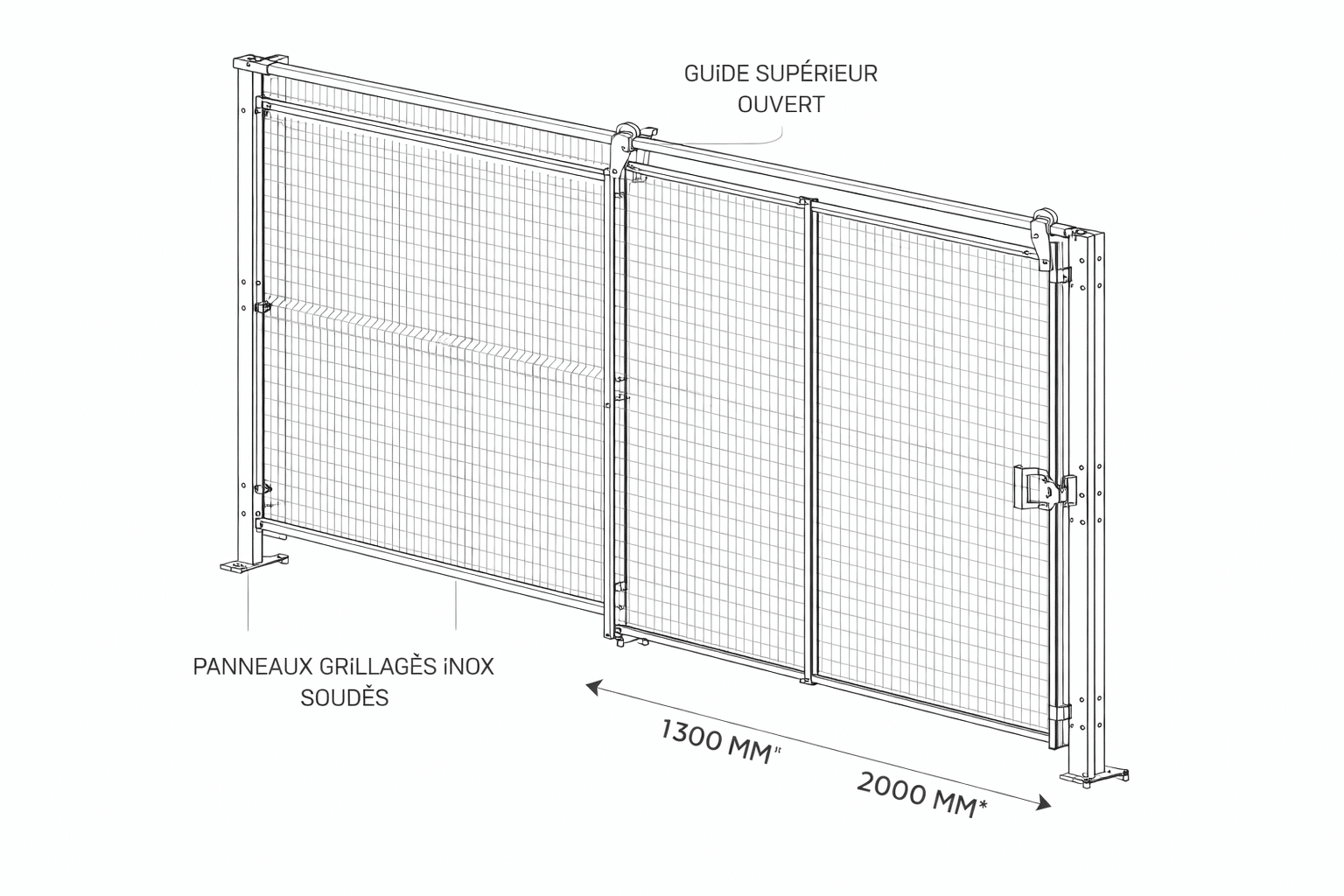 La porte coulissante inox à guide supérieur est conçue pour offrir un accès fluide, sécurisé et parfaitement adapté