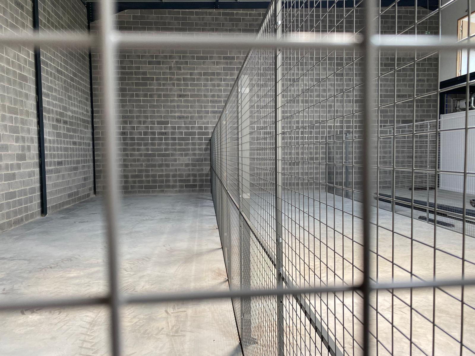 cloisons grillagées industrielles destinées à structurer et sécuriser plusieurs zones de stockage.